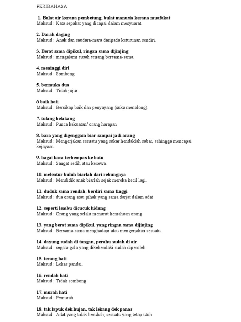 Doc Senarai Peribahasa Buku Teks Tingkatan 4 Dan 5 Fatinah Razak Academia Edu